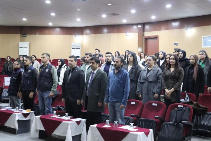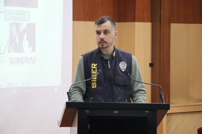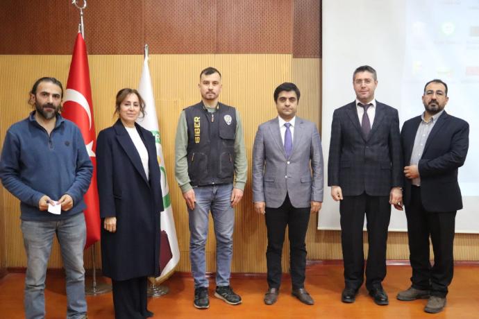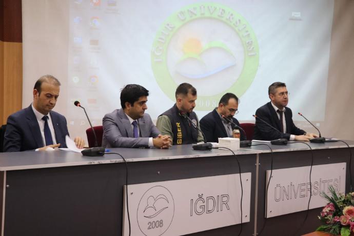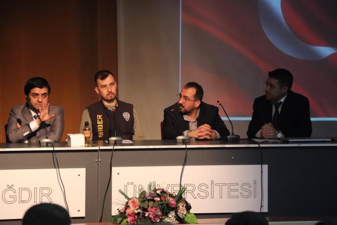 Karaağaç Kampüsünde 04.03.2026'da Uygulamalı Bilimler Fakültesi ve Cumhuriyet Başsavcılıkları, Emniyet Müdürlüğü iş birliğiyle gerçekleştirilen panelin açılış konuşmasını Iğdır Üniversitesi Rektör Yardımcısı Prof. Dr. Haktan Sevinç, moderatörlüğünü ise Dr. Öğr. Üyesi Sinan Akseki, gerçekleştirdi. Öğrencilerin dijital dolandırıcılık yöntemleri konusunda bilinçlendirilmesi ve banka hesaplarının üçüncü kişiler tarafından kullanılmasının doğurabileceği hukuki ve cezai sonuçlar uzman kişiler tarafından anlatıldı.